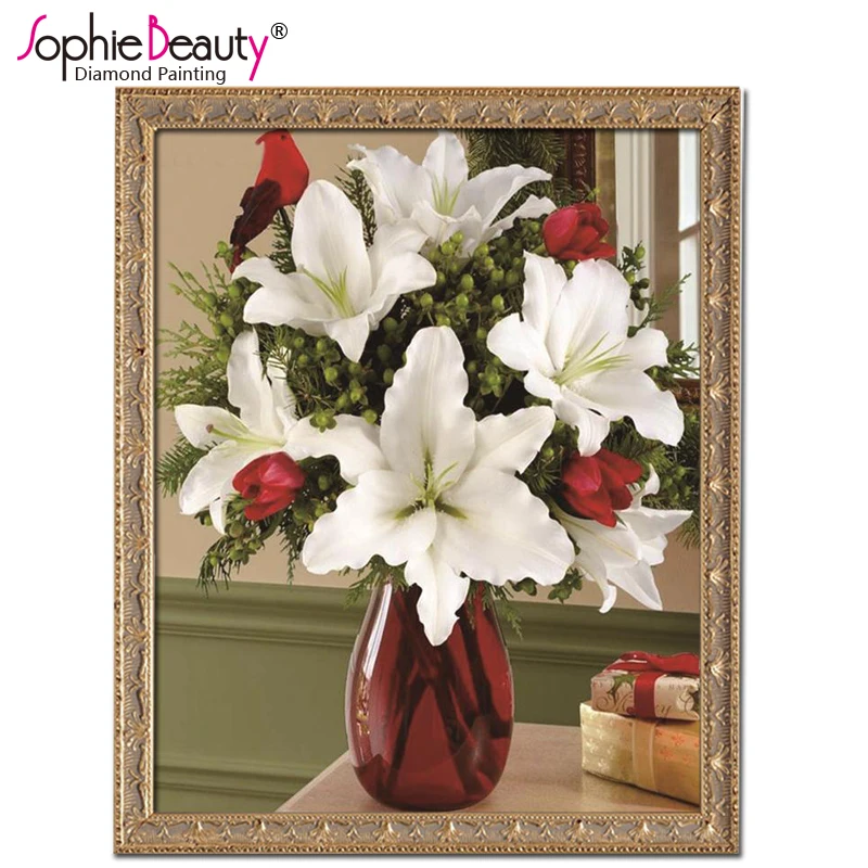 Sophie Beauty Diy Diamond Painting Full Round Cross Stitch Handcraft Embroidery Multicolor Lily Vas
